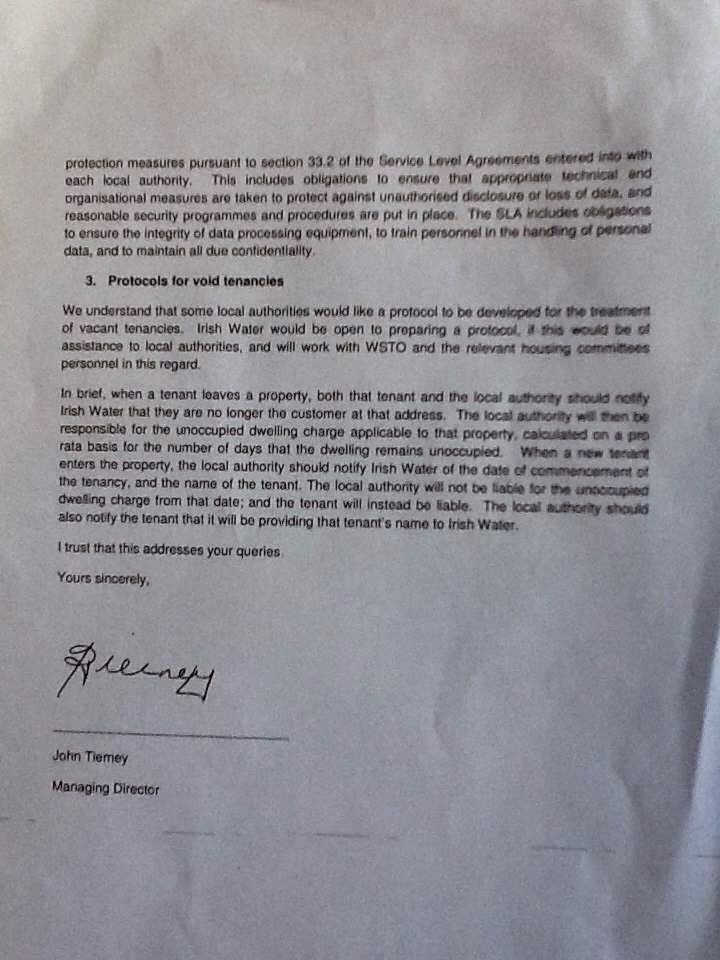 Cllr Brady went onto say "Any attempt to add unpaid water charges to tenant’s rents will only compound difficulties many are facing and could put their tenancy in jeopardy by going deeper into arrears. At the meeting the County Manager confirmed that these powers have been extended to Irish Water but no further information had been forthcoming".